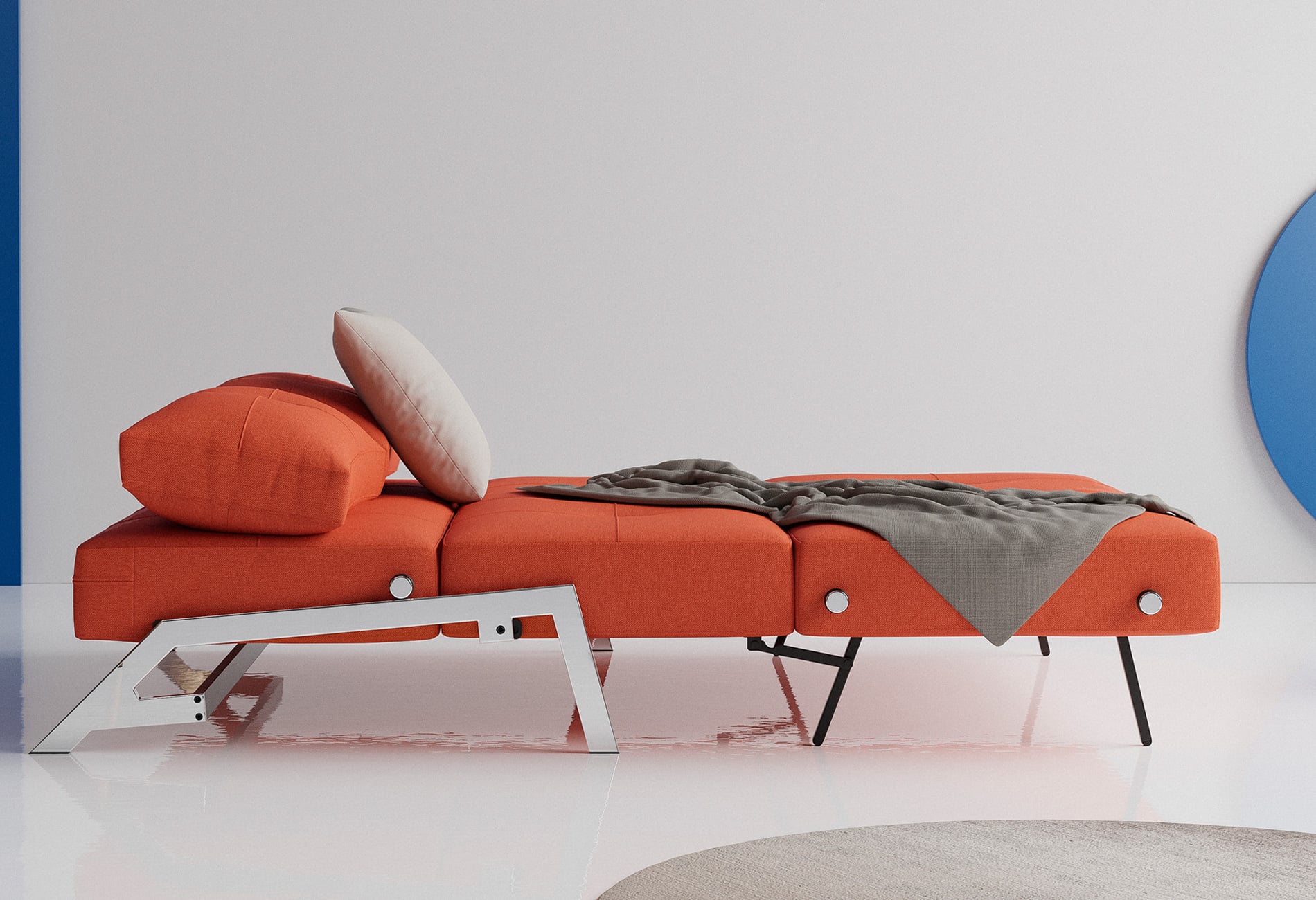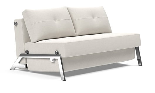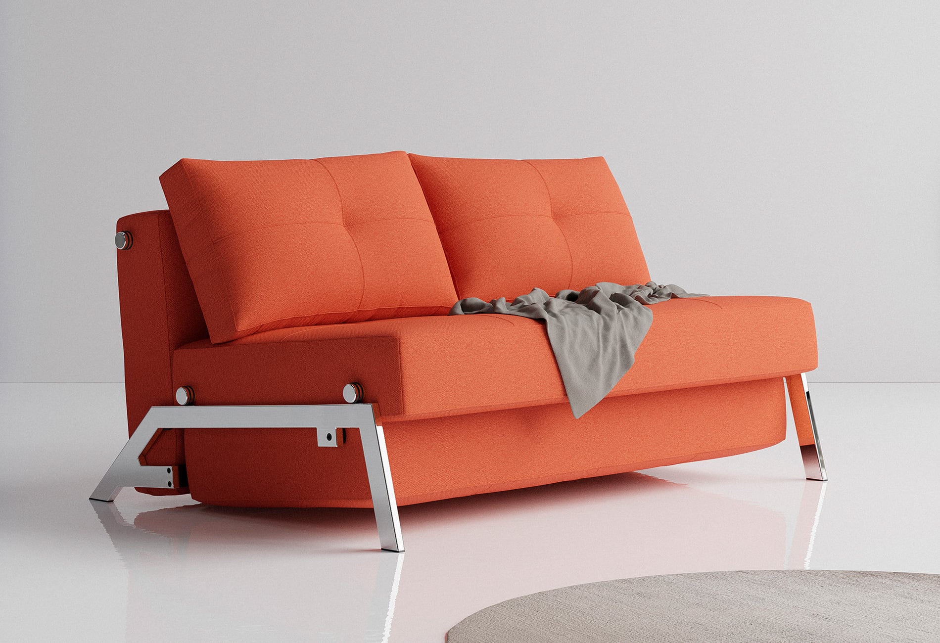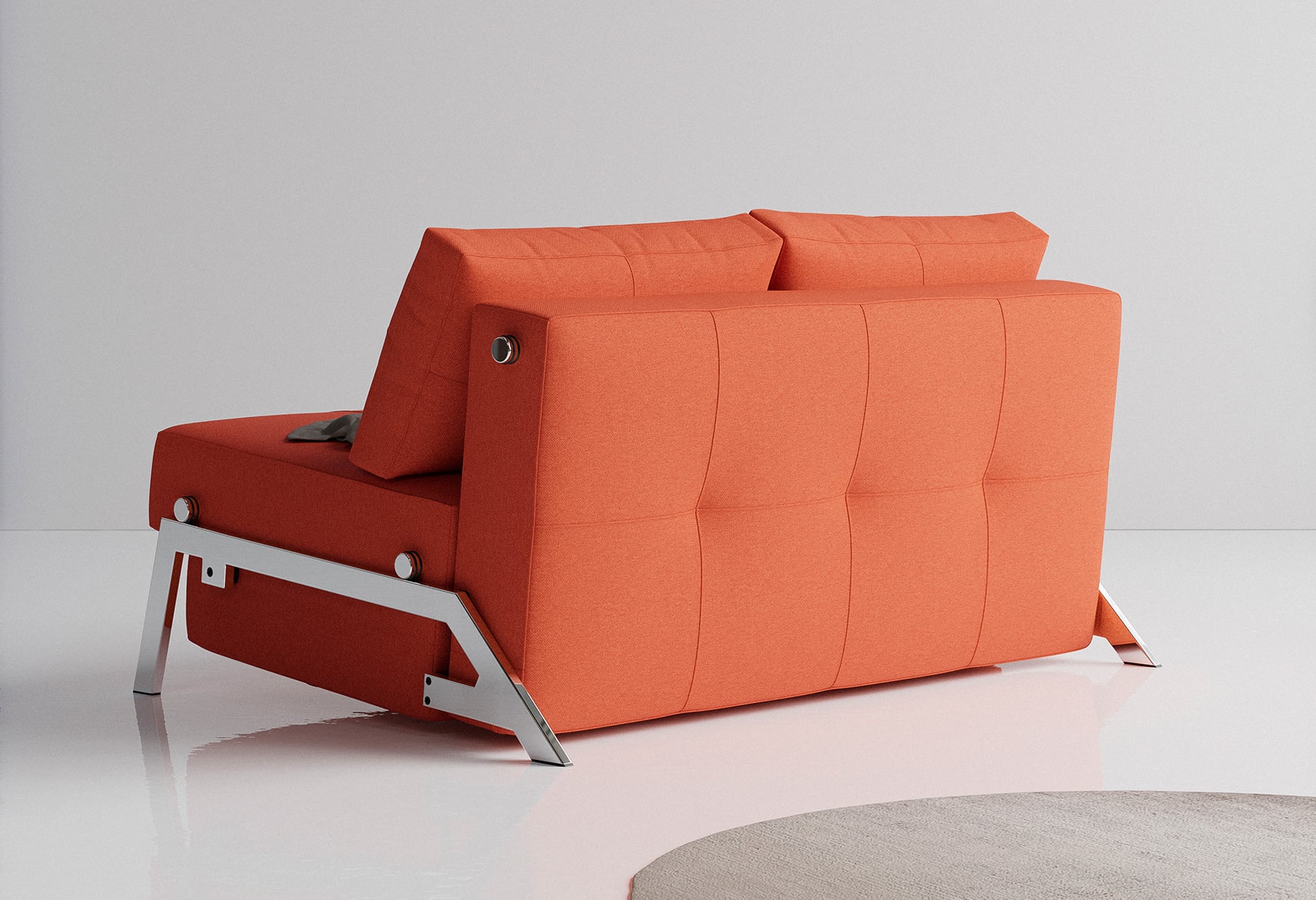 Compact living defined. Folding out into any room, the Cubed Double Sofa Bed is a comfortable double bed. With its sleek chrome legs and minimalist design, this sofa bed provides a modern touch that fits perfectly into urban living spaces.