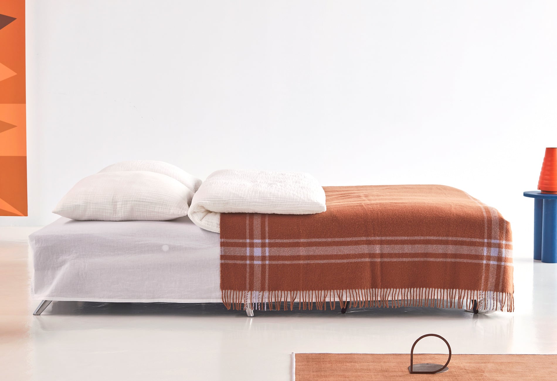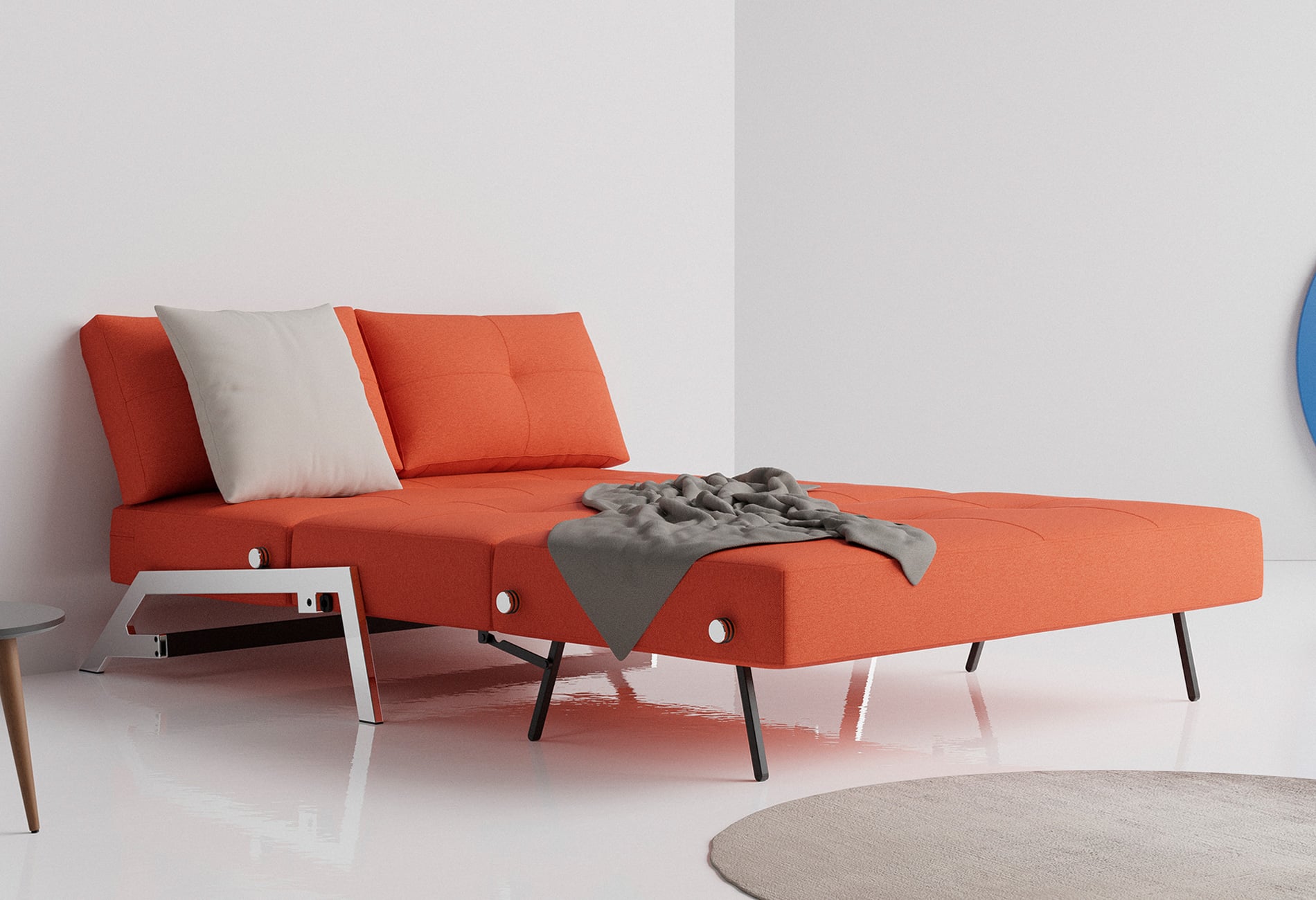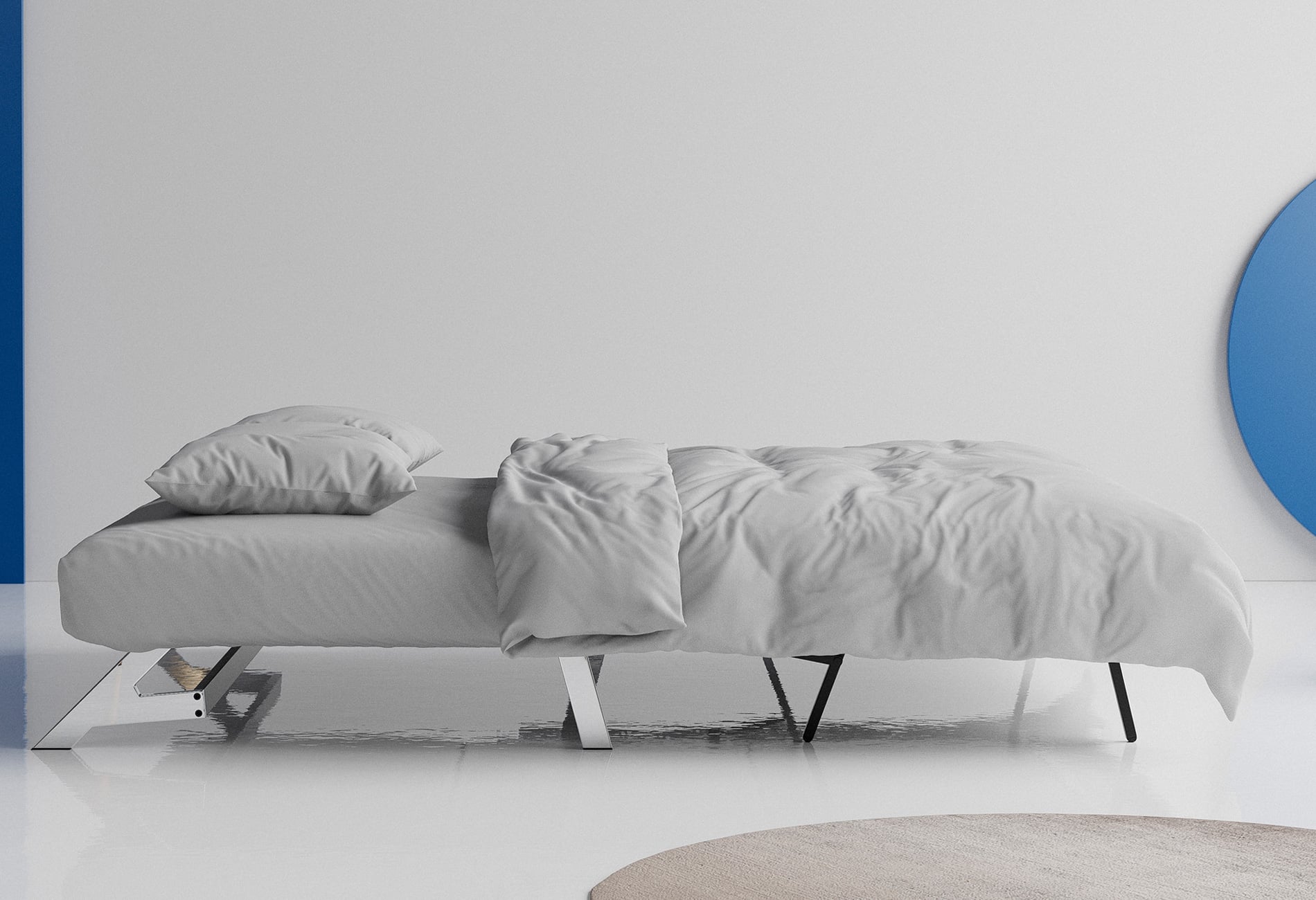 Compact living defined. Folding out into any room, the Cubed Double Sofa Bed is a comfortable double bed. With its sleek chrome legs and minimalist design, this sofa bed provides a modern touch that fits perfectly into urban living spaces.