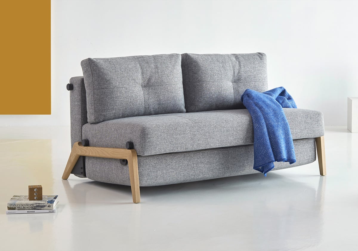 Compact living defined. Folding out into any room, the Cubed Double Sofa Bed is a comfortable two-person bed. A superior double sofa bed with a natural wood finish, exuding a Scandinavian design attitude.